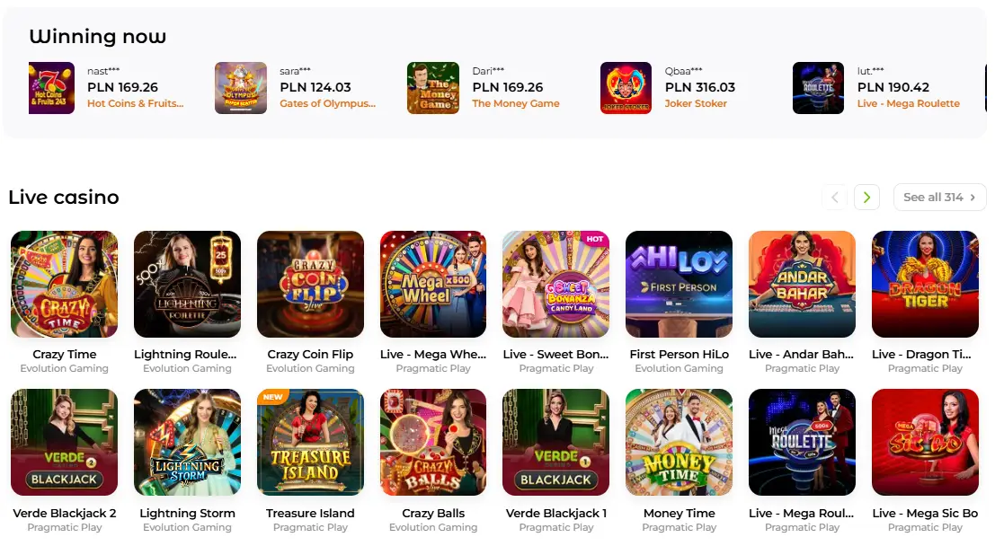 Możesz poprosić o wypłatę środków w dowolnym momencie, jeśli wszystkie depozyty zostały potwierdzone i przeszły weryfikację. Środki muszą być wypłacane w taki sam sposób, w jaki zostały wpłacone. W przypadku dużych kwot (od 4 230 zł) konieczne będzie przejście identyfikacji — dostarczenie skanu lub zdjęcia paszportu/dowodu osobistego. Jeśli nie postawiłeś zakładów o wartości co najmniej dwukrotnie większej niż depozyt, kasyno może potrącić 20% kwoty wypłaty.